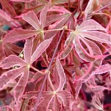 Acer palmatum Shirazz is a vibrant Japanese Maple with vibrant variegated foliage, ranging from pink to cream and red cherry pink during summer, color is always dynamic and vibrant on this exciting.