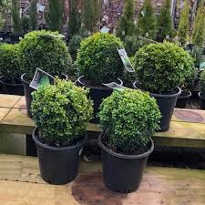 English Box plants are an eye-catching focal point in the garden since they are particularly cultivated and moulded into a formal ball standard shape. They look great bordering driveways and walks or framing entryways.