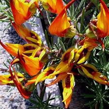 Lotus Gold Flash is an eye-catching semi deciduous plant that shows off striking golden flowers splashed with red. With a low and spreading growth habit. The creeping habit makes it perfect to cascade over a retaining wall, pot or a hanging basket making a stunning display.